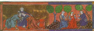 We noted a similar uneasiness with the "immoral" aspect of "courtly love" in the Franklin's Tale, in which the "courtly love" relationship is legitimatized by marriage: Arveragus and Dorigen continue to love each other in the "courtly" fashion even AFTER their marriage, and the more "traditional" (i.e. adulterous and secret) "courtly love" affair desired by Aurelius never takes place.