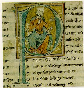 Eleanor was a fascinating figure in her own right. She was the grand-daughter of Count William IX of Poitiers, the Duke of Aquitaine, who was the first known troubadour poet (remember that the troubadour poets are the ones who first wrote poetry about what we now call "courtly love"); she was brought up in the cultivated court of Aquitaine, where poetry, music and the arts flourished. She was married first to King Louis VII of France, who had the marriage annulled in 1152--a very bad political move on his part, since she promptly married Henry II of England (1153), thereby bringing to the English crown her own vast territories (essentially all of modern-day France south of the Loire river). Eleanor also brought to England her great love of the arts, and supported many poets and musicians with her patronage; she also brought, presumably, her taste for literature dealing with love (including the "courtly love" written about by troubadours such as her grandfather), works in which women play important roles (unlike earlier epics, such as Beowulf).